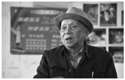 图为“老人梦广播站”的发起者96岁高龄的退休教师邱世兴。