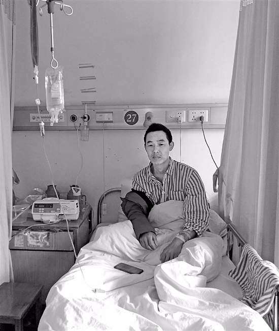 12月18日,记者在医院见到杜红彦时,他刚做完B超检查,步履维艰地走回病房,身上披着的红色羽绒服显得整张脸更加苍白。