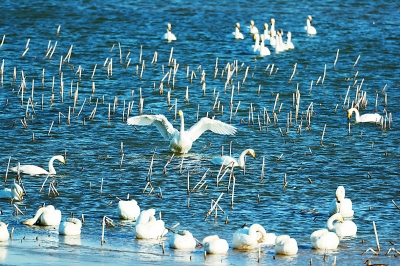 辛苦的付出换来了候鸟们能够振翅高飞的一片安全天空。万物有灵,在库区,让站员们感动的事也常常发生。李理说,在这几年的监测中,他们发现大天鹅有时会故意游向这些身着迷彩服的工作人员。其实,大天鹅是种非常警觉的鸟类,它们通常与人类保持着百米左右的安全距离,只要稍稍靠近,它们就会立刻飞走。“前几年监测时,看到这一幕我们都蒙了,不知道为什么天鹅见到人类不躲不飞,反而靠近,直到这几年才慢慢习惯。天鹅种群每年往返南北两地,都要经过北京,我们每年都会在这里等候它们。就像老朋友一样,它们真的会认出我们。这份信任感让所有的工作人员都心怀温暖备受鼓舞。”李理预测,今年的迁徙期将于1月底结束,保护站的工作人员们也将在寒冬中继续守护。(本报记者 刘琳 李理摄)