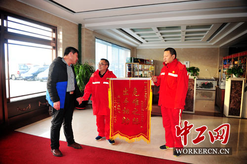 于德平的儿子送上锦旗感谢石油人的救命之恩
