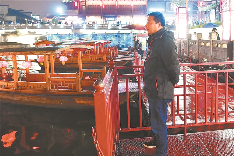 秦淮河上工作了18年,吕益峰坦言除了泮池码头,整个旅游线路他们夫妻还真没静下心来好好欣赏过。