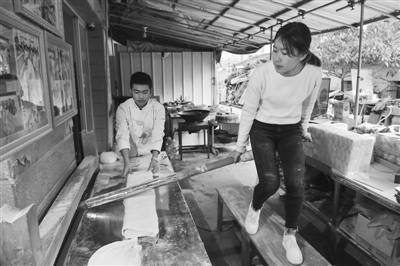 大学毕业后,郭炜兰放弃了一家互联网企业的高薪挽留,回到家乡,帮助家人经营自家延续了上百年的手工面作坊。(新华社记者 宋为伟 摄)