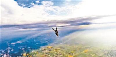 飞机升至23000英尺的高空,于音打开舱门,冷冽的空气疾速袭向她的每个毛孔,深吸了一口气稳稳站住。