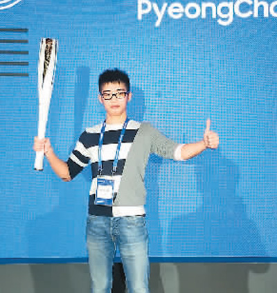 杨仕林作为2018年韩国平昌冬奥会火炬手亮相发布会。