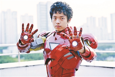 晏劭廷身着自己亲手制作的钢铁侠铠甲