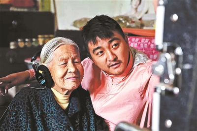 李爱连老人和导演郭柯在纪录片《二十二》拍摄现场