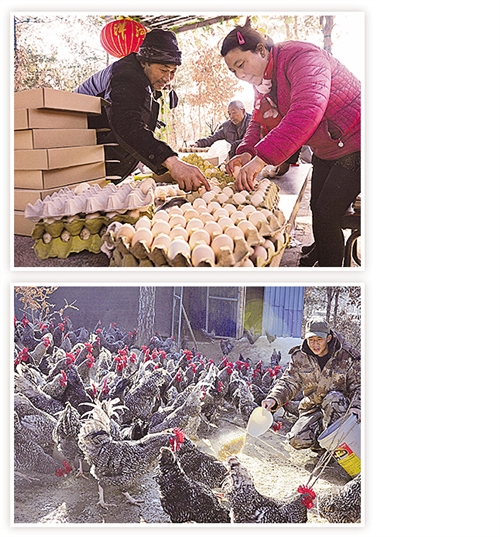 河南南阳市卧龙区潦河坡镇崔坊村上岗组村民樊中阳,是当地小有名气的养鸡“博士”。他承包了200多亩山地,养殖了30000多只芦花鸡、绿皮蛋鸡,通过专业合作社+农户模式生态散养品种鸡,走电商销售途径,市场销路非常好。鸡蛋卖到了北京、杭州、深圳等大城市,一枚鸡蛋3元钱,一年下来毛利就是50多万元。 樊中阳自己挣了钱,不忘带动村民一起养鸡致富。2017年2月份,他投入50万元资金,注册成立了春秋生态养殖农民专业合作社,凡是加入合作社的村民,他都免费提供已成长45天、连续防疫10次的鸡苗。等待鸡苗长成产蛋后,只要交给他15颗鸡蛋即可抵用当时鸡苗的费用,没有任何风险。同时,他还向社员传授品种鸡养殖技术,定期到社员养殖场免费防疫,并负责社员养殖的整鸡和鸡蛋销路。目前,已有10多户农户加入了合作社。 崔培林摄影报道