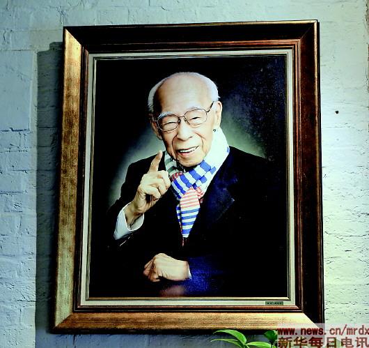 这是在饶宗颐文化馆拍摄的国学大师饶宗颐照片(2017年4月1日摄)。新华社记者李鹏摄
