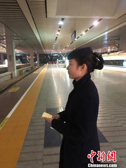 图为长沙南站餐车乘务人员在等候列车进站 向芳彬 摄