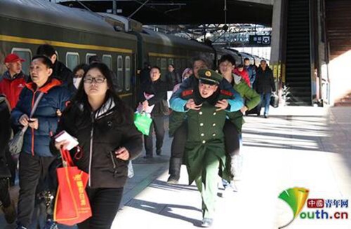 是的,是武警战士。在全国火车站、汽车站、客运站都迎来客流峰值时,成千上万名武警战士每天都要忙碌近18个小时。旅客意外扭伤了脚踝,没关系!“我愿用肩膀扛起你回家的路”。