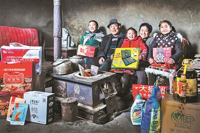 四川省阿坝州日隆镇金锋村,巴桑爷爷和嘎西奶奶带着三个孙子牵着马到村上驮了一马背的东西回家,这是他们在外地打工的女儿在淘宝网提前购置的年货。因女婿在前两年车祸中意外身故,女儿只能出门打工。五年级的泽仁喜欢画画,妈妈给她买了一盒150种颜色的彩色铅笔。羽毛球拍是男孩子绒布最喜欢的,小妹妹卓玛则抱着零食不松手。电热毯是给巴桑爷爷和嘎西奶奶的。家里也做好了腊肉香肠挂在门梁上,就等着自己的女儿、孩子们的妈妈一起回家过个热热闹闹的新年了。本版文并摄/牛镜