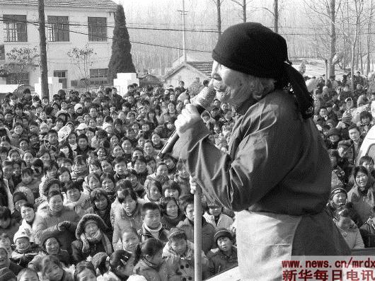 ▲2006年,在黄川村“村晚”现场,村里一位老人也兴奋地登台表演。 图片均由受访者提供