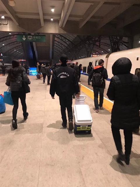 今年春运,网上订餐服务首次被“搬上”高铁动车。去年7月份实现高铁网络订餐后,在高铁上享受“外卖”美味的旅客激增。截至目前,由中铁武汉局集团公司在武汉站、汉口站所设立的两个网络订餐配送中心,累计完成网络订餐配送近3.8万单。这些送餐“疾行侠”,是如何将热乎乎的饭菜送到旅客手上的呢?2月14日,湖北日报全媒记者进行探访。