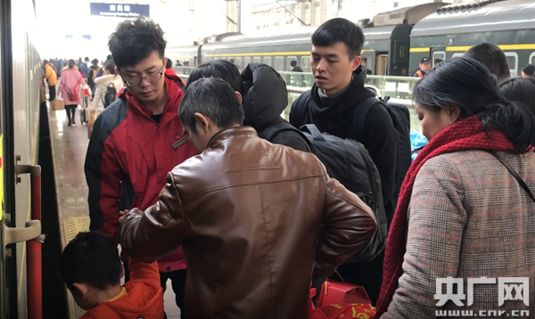央广网南昌2月18日消息(记者李兆颖)2018年春运,全国旅客发送量预计达29.8亿人次。由于春运期间客流量大,除了正式的乘务人员外,还有这样一群从非客运单位临时抽调来支援春运乘务工作的95后青年职工,这些人被来往的旅客称作“跨界列车员”。经济之声《新春走基层》特别报道“过节不回家的人”今天关注:95后“跨界列车员”王铭的春运故事。