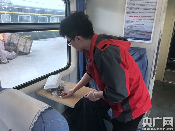虽然只是临时担任列车员,但是王铭的工作与正式的列车员并没有什么不同。“就我们列车员而言,平时主要做的日常工作就是车厢的卫生清洁工作,还有就是对于旅客的突发情况,我们也要做出积极的回应。”