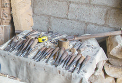 周明的部分雕塑工具。(本报记者 黄娴摄)