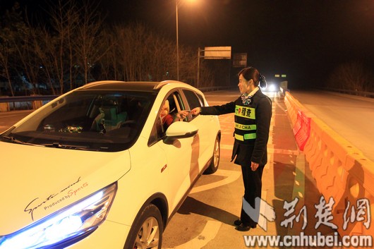 图为:饶丹将车辆通行卡回收、解答免费政策并送上新年祝福。杨昆摄