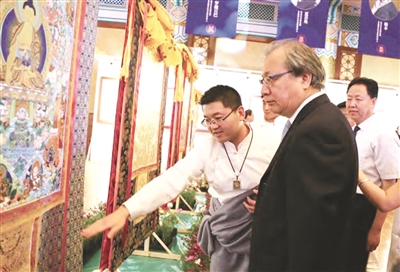 这些年在学画的同时,范庆基跟着师傅去了很多地方做展览,在上海、北京、广州等地的展览上,我们都曾见到过范庆基担任着解说员的工作,他严谨而生动的解说,让外面的人们对唐卡艺术有了更加深入的了解。最近两年,师傅却不让范庆基出外承担解说工作了, 除非一些特别重要的邀请。因为出去的时间多了,画画的时间就少了,而范庆基一定是一位将来可以在热贡唐卡方面有传承和创新,并且能画出自己风格的唐卡画家,所以范庆基的时间不能浪费了。师傅这样认为。