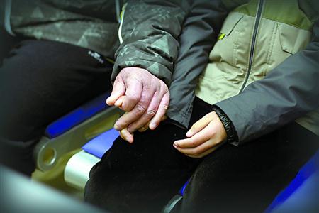 看到亲人,张某的眼眶湿润了,手慢慢移向孙子。