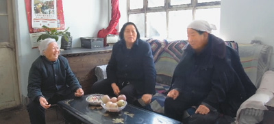 2018年2月11日,申纪兰(左二)为了完善十三届全国人代会议案,在村民家中调研,收集大家的意见。本报记者 杨俊峰摄