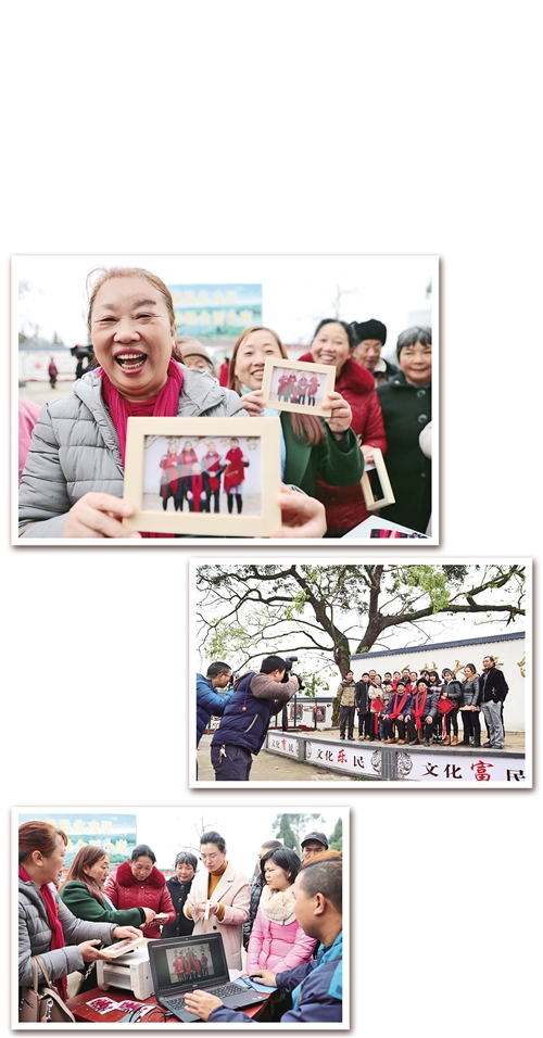 左图 华蓥市摄影志愿服务小分队在给即将返程务工的农民工现场打印制作“全家福”“亲子照”。