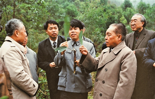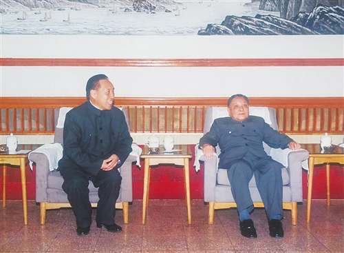 上图 1986年春节,邓小平同志在四川成都听取杨汝岱同志汇报工作。