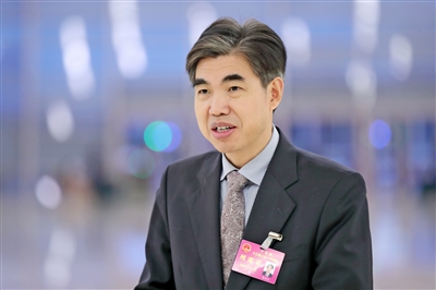 朱列玉出席2018年广东省两会期间接受采访。徐志毅 摄