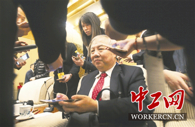 3月6日,上海代表团在人民大会堂举行全团会议后,C919大型客机总设计师、中国工程院院士吴光辉代表被记者团团围住。为了方便记者会后继续采访,吴光辉代表和记者现场一一互加微信好友。
