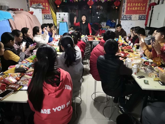阳台上,刚养了不久的两只大狗正懒洋洋地趴着晒太阳。客厅里,孩子们围在桌边预习新学期的功课。厨房里,何江萍手里择着菜,另一位工作人员杨文博正在颠勺,满是烟火气息。