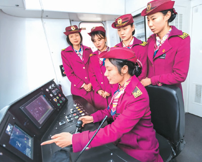 笔挺的梅红制服,漂亮的蝴蝶结花,在武汉地铁全线网的1500多名司机中,7名“90后”地铁女司机显得格外亮眼。5年时间,女司机们早就摆脱了“菜鸟”标签,安全行车总计百万公里,相当于绕行地球25圈,谱写出一道美丽的青春轨迹。图为3月6日,“90后”女司机在驾驶室内交流经验。