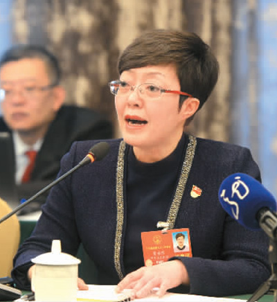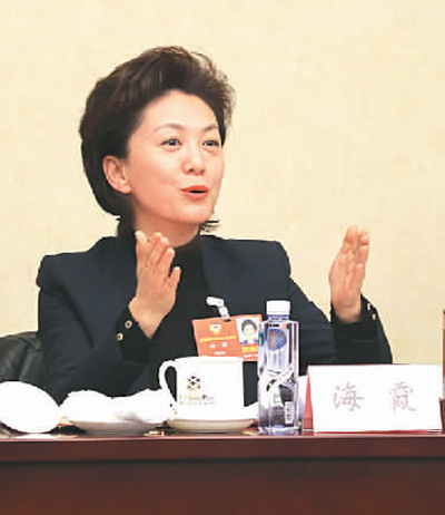 全国政协新闻出版界别举行小组会议,讨论宪法修正案草案。图为海霞委员在会上发言。本报记者 史自强摄