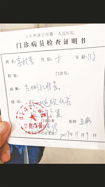 李桂香提供的门诊检查证明书显示,手术后,李桂香仍需按时返回医院接受化疗治疗。“前后共进行了6次化疗,都是在好心人的帮助下完成的。”