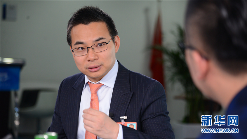 3月18日,全国人大代表、远景能源创始人兼CEO张雷做客新华网2018全国两会特别访谈。新华网 杨濛摄