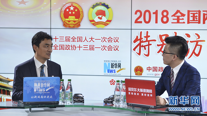 图为18日,全国人大代表,云南省曲靖市委副书记、市长董保同做客新华网2018全国两会特别访谈。新华网 李相博摄