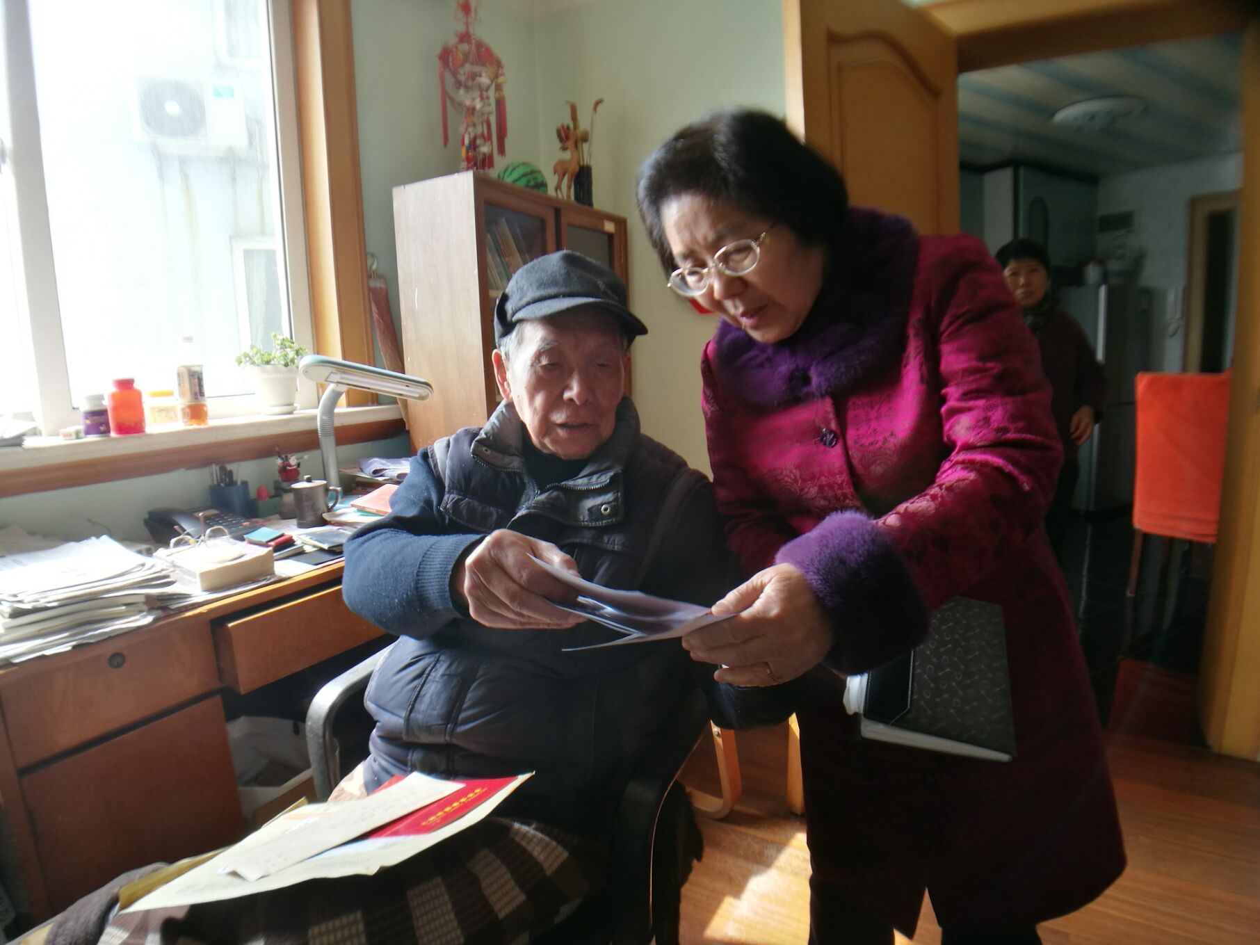 奉化大堰学校寄来的信件和照片让叶老颇为欣慰,他和女儿叶良骏一起分享这份喜悦。王晨辉 摄