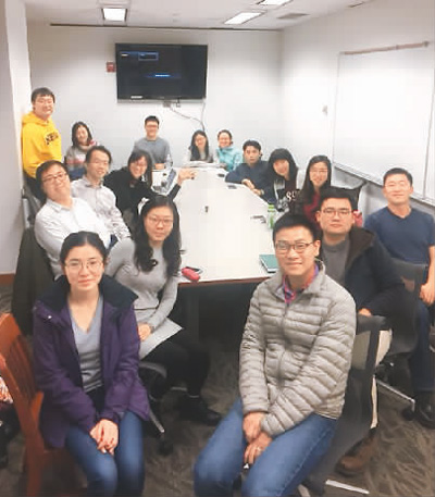 蒋波(左三)和学校各院系的同学以及在美国西雅图工作的中国朋友参加文化沙龙