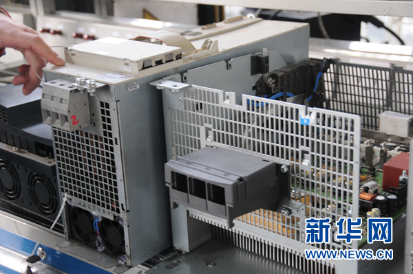 胡明华给记者介绍实验室里摆放的各种类型的驱动装置。新华网 聂晨静 摄