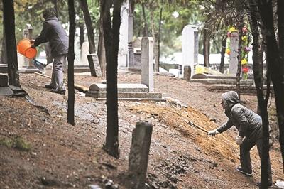 八宝山人民公墓23万平方米内安放着7万余座墓碑,纵横交错摄影/本报记者 魏彤