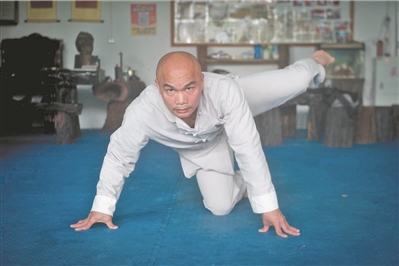 “这种拳法叫地术拳,因似狗的动作而被民间俗称‘狗拳’。拳法来源于福建,可能因避讳,在佛山一般被称为‘地龙拳’或‘地躺拳’。”表演者黎伟军向记者介绍道。