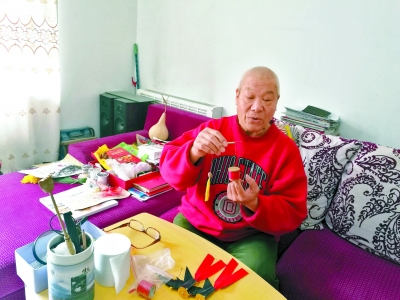 71岁的王文运家住通州区东潞苑,小区里的人不少都知道他是做太平鼓和太平燕的。在王文运小的时候,太平鼓又叫“摇摇鼓”,“这鼓是专门针对年这个怪兽做的,你看年有三怕,怕红、怕火、怕响,这鼓面是红色,发出的声响像蝉鸣,又有点像蛙叫。”一边说,王文运一边就摇起了自己正在做的太平鼓,声音响彻整个客厅,他的脸上也有了孩童般的笑容,“我小时候,爷爷和父亲都是做手工活儿的,那时候他们就给我做这个鼓玩儿,可以说耳濡目染,就学会了。”老人说,这太平鼓看似简单又不简单,“科学原理就八个字,摩擦、传导、震荡、放大,但是你光知道这些原理,也做不来,这就是手艺。”