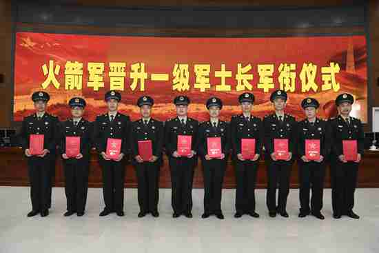 接过的是使命,扛起的是责任。授衔仪式现场,他们佩戴崭新军衔,个个精神抖擞。作为一支高技术战略军种,士官队伍占据火箭军部队“半壁江山”。一级军士长是导弹部队建设的脊梁,他们长年扎根基层,长期奋战在环境最艰苦、技术含量最高的工作岗位,在影响带动广大士兵弘扬优良传统、凝聚意志力量、投身新时代火箭军现代化建设中,发挥着示范引领作用。