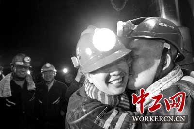 4月12日,兖矿集团济三煤矿井下,支架工夏明德见到了前来探望的妻子王辉。这一天,该煤矿工会组织了13名一线职工家属走进井下工作面,开展“走千米巷道、知亲人艰辛”安全慰问活动,让她们通过亲身体验,感知亲人工作的艰辛。同时也请女工家属把安全嘱托带给井下作业的矿工们。