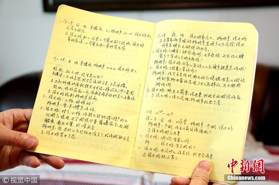 自打退休后误打误撞进入影视圈后,来自河南洛阳的杜松叶不仅做过“北漂”,也当过“横漂”。如今,已经67岁的她,从对表演一窍不通,到飙戏时眼泪说来就来,再到被“破格”录取到北京电影学院继续教育学院培训基地,这些年,她用自己的努力和汗水,走出了一条不同寻常的“明星路”。杜松叶曾在洛阳一家企业上班,企业破产后,她和同事下海经商了几年。直到2013年她才退休,把手头上的事儿全部交给了子女。“退休后闲不下来,就想找点事做。”刚开始,杜松叶看到别人穿旗袍走秀很美,便报名参加了老年模特队,但由于身体吃不消,没多久就放弃了。直到有一天,她受一个朋友邀请,去给本地一档情景剧做演员,没想到竟从众多报名者中脱颖而出。就这样,她正式走进了影视圈。从“北漂”到“横漂”,5年来,杜松叶前前后后在数十部影视剧和网络电影中,扮演了50多个不同角色。由于演技不断受到认可,前段时间,她还与赵丽颖合作,在电视剧《知否知否,应是绿肥红瘦》中扮演了一位嬷嬷。后来,在拍戏过程中,杜松叶发现身边很多人都是科班出身,于是便萌发了想到专业电影学院进修的念头。2018年3月,她报名参加了北京电影学院继续教育学院培训基地的招生考试,并顺利被录取。“我年龄太大了,能考上真不容易。”杜松叶说,她领取通知书的时候,有一位参加面试的老师告诉她,原本她这个年龄是不考虑录取的,但由于她表现特别突出,所以就“破格”给了她这次上学机会。“无论多大年龄,都应该为自己的梦想努力,说不定哪天就能实现。”这两天,杜松叶将带着带着行李,独自踏上求学之路。她信心满满地说,她一定会好好把握这次深造学习的机会,今后做一名更出色的演员。图为在横店时用过的记台词的本子,杜松叶至今仍保存着。 常镜头 摄 图片来源:视觉中国