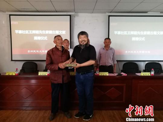 王辉超说,古书是他的祖父保留下来的,传给他的父亲又传给了他。古书历经风雨,但是仍然得以保存了下来。今天他把这些古书捐赠给贵州民族大学图书馆,希望相关专家经过研究,为贵州历史文化做出贡献。