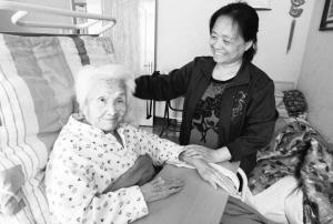 走进王瑞霞家中,每个角落都收拾得干干净净,闻不到一点异味,很难想象住着一位吃喝拉撒都在床上的高龄患者。97岁的薛春荣老人满头白发,神态安详地躺在一张专用护理床上,谈起自己的儿媳,脸上洋溢着幸福的笑容。