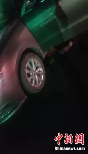 监控画面显示:21日凌晨,发生一起小轿车与电动自行车碰撞事故,电动自行车驾驶人被压在小轿车底部,无法动弹。