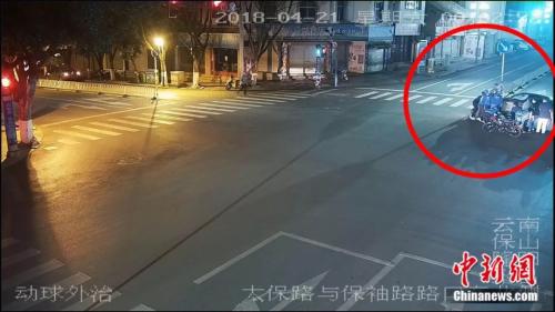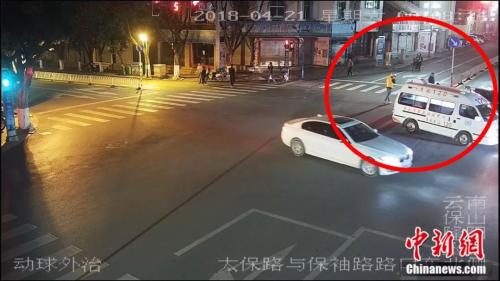 云南保山市交警支队民警近日在调取一交通事故监控时发现感人一幕。
