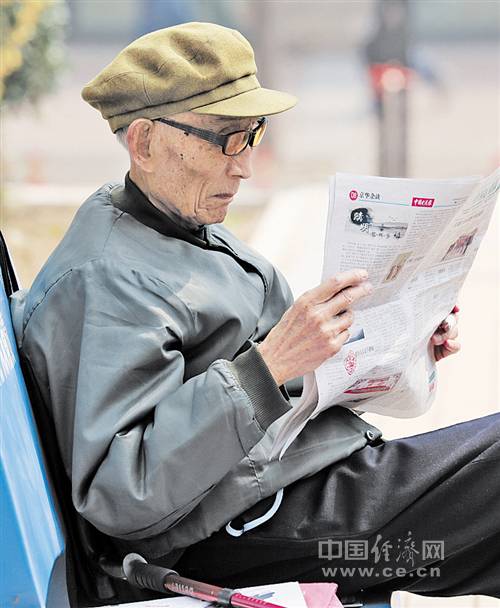 周智夫生前在干休所小花园中阅读报纸。经济日报-中国经济网记者 姜天骄摄