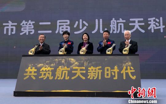刘旺、刘洋等人登台启动无锡市第二届少儿航天创意大赛。 孙权 摄