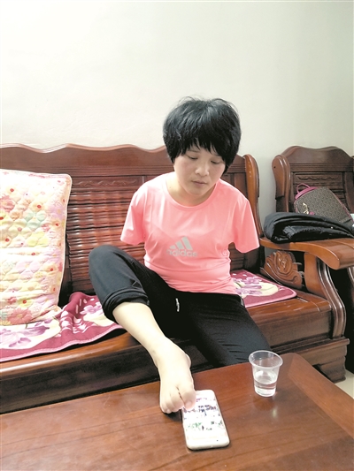 谭小凤用脚穿衣、做饭、玩微信 多次获得省市游泳比赛冠军
